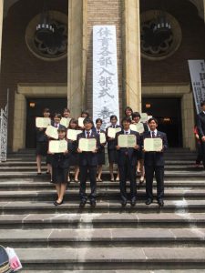 新入生は、体育各部関係者の方々からご講演を頂いたり、近所の皆様の応援の下、大学周辺をパレードしたりして、体育各部生としての在り方等を学んだことでしょう。