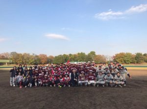 また、例年OB戦は9月に引退した4年生が中心でしたが、今年は既に就職・進学した先輩方にもご参加頂き大変盛り上がりました。