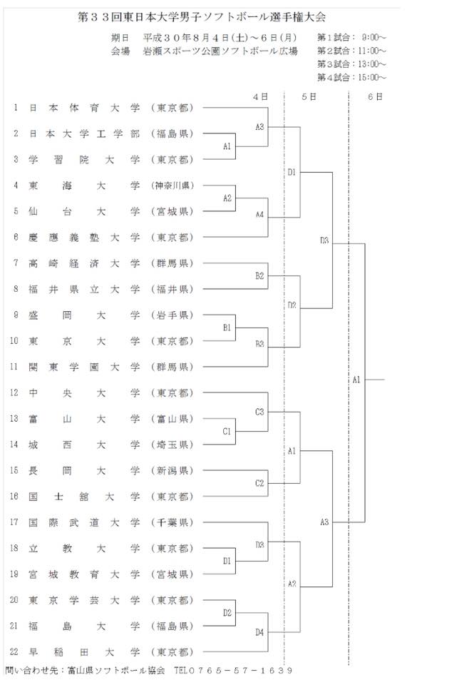 8/4(土)より富山県で行われます、東日本選手権大会の組み合わせが決定しましたのでご報告いたします。
