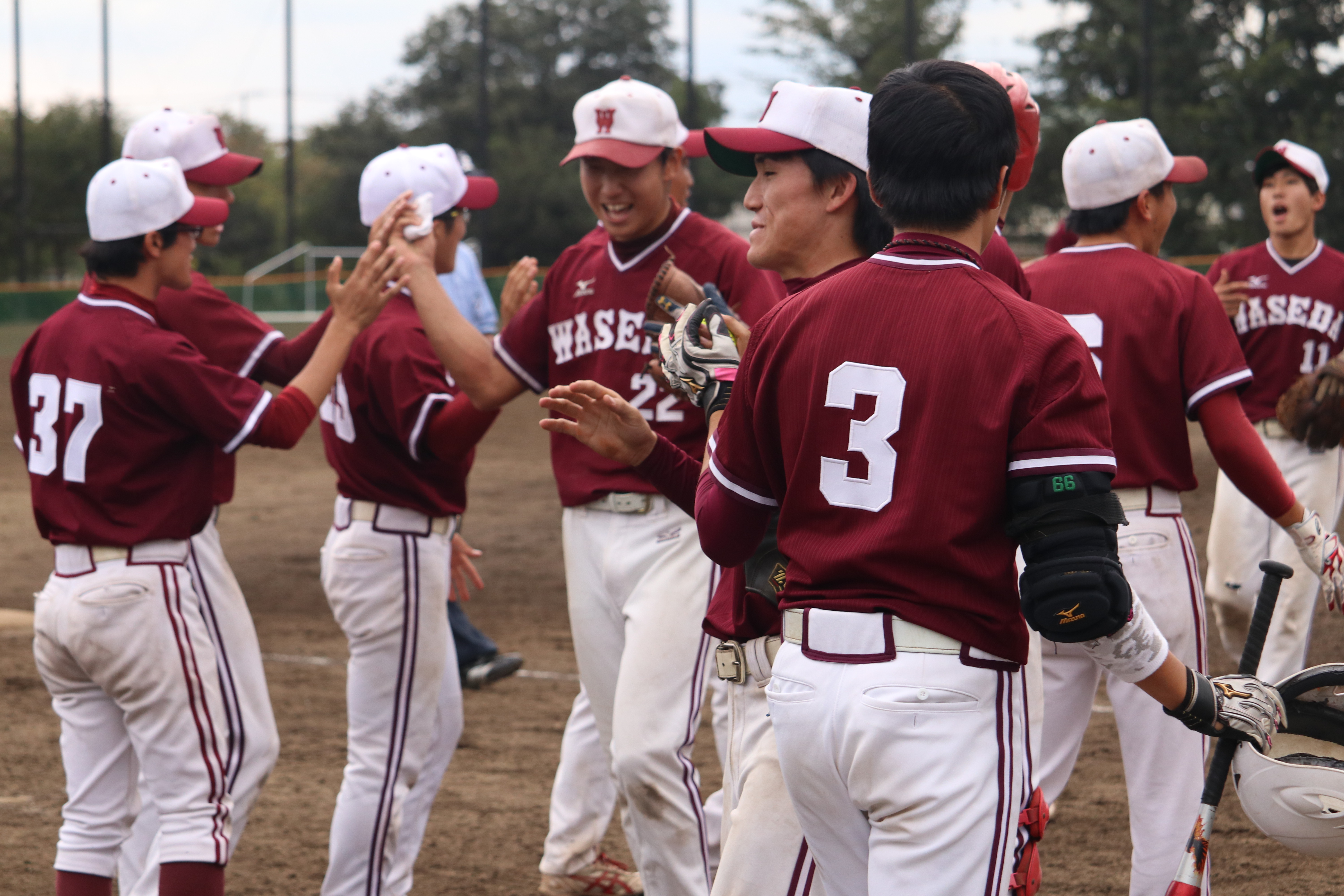 3回まで両者無得点のまま進んだ試合は4回に動いた。先攻早稲田の先頭川上が左中間へ三塁打を放ち好機とすると続く4番鳥岡が中方向に本塁打を放ちこの回2点の先制に成功。打者1番から始まった5回も石井、川上の安打で一死1,3塁とすると続く鳥岡が中犠飛で1点還す。その後も相手失策にも助けられさらに1点を追加し4-0とする。6回には先頭新堀と続く織部がともに出塁すると打順は1番に戻り石井。この石井が中方向へ特大3点本塁打を放つと点差は一気に7点差に。このリードを守りきり見事インカレ王者の日本体育大学から勝利を収めた。