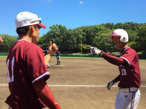 そのまま0-3のビハインドで迎えた5回裏早稲田打線に反撃の狼煙が上がる。先頭の織部が死球で出塁すると続く梶谷の犠打間に二進し好機を作る。さらに続く実重も相手失策に助けられ出塁すると、その後二死2,3塁とし打者は1番石井。千葉県代表として国民体育大会の出場も決め波に乗る石井が期待に応える中前適時三塁打を放ち2点を返した。その後相手捕逸間に石井も生還し、この回同点に追いついた。